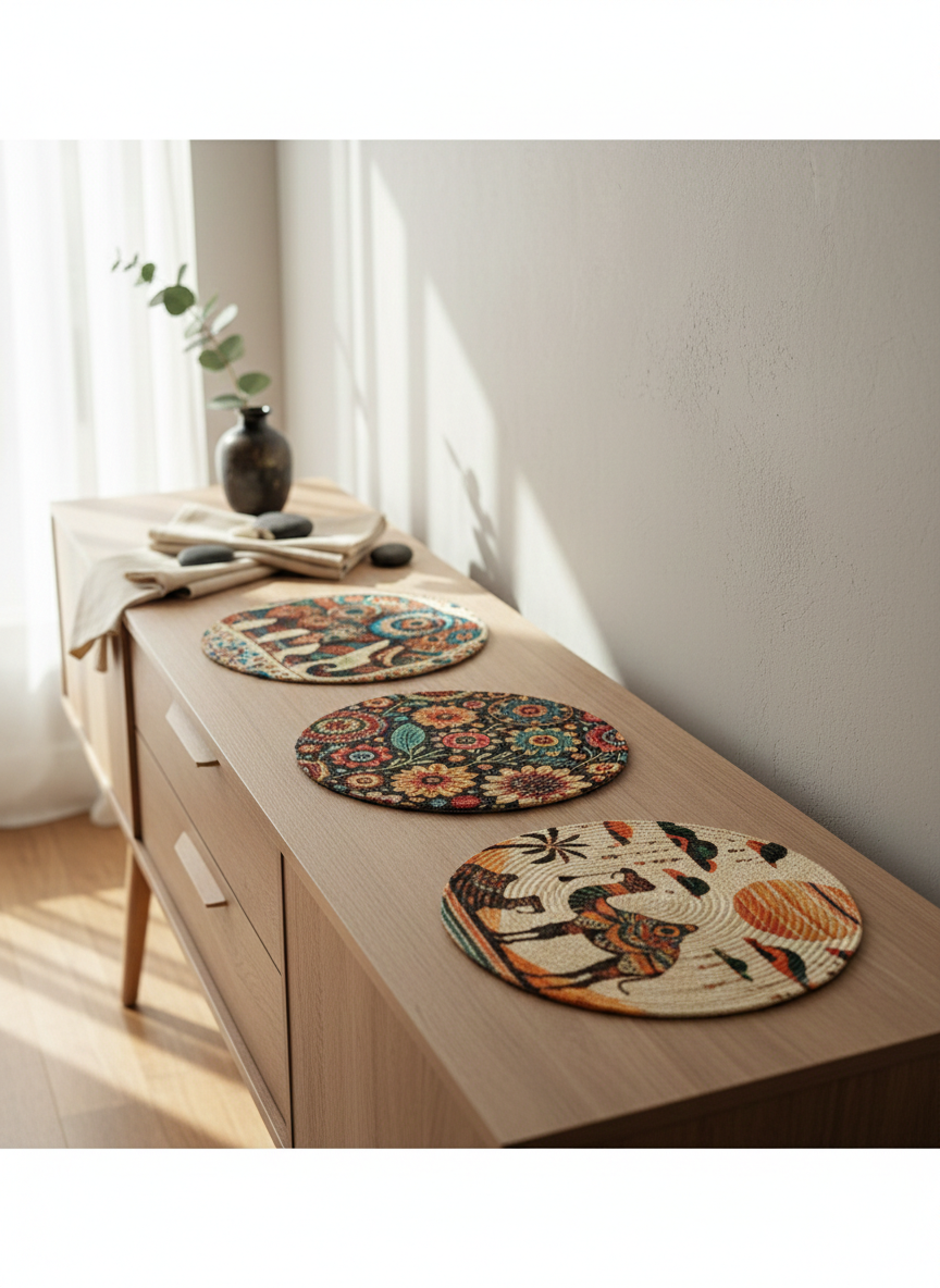 A collection of woven mats and table textiles designed to ground your table in warmth and texture.