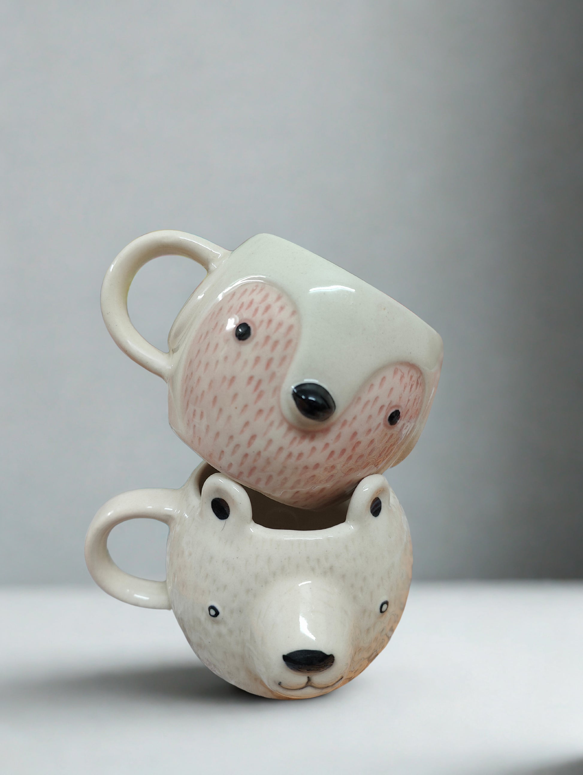 • Adorable animal-face mugs 🐻🦔 perfect for hot cocoa, milk, or coffee breaks.
