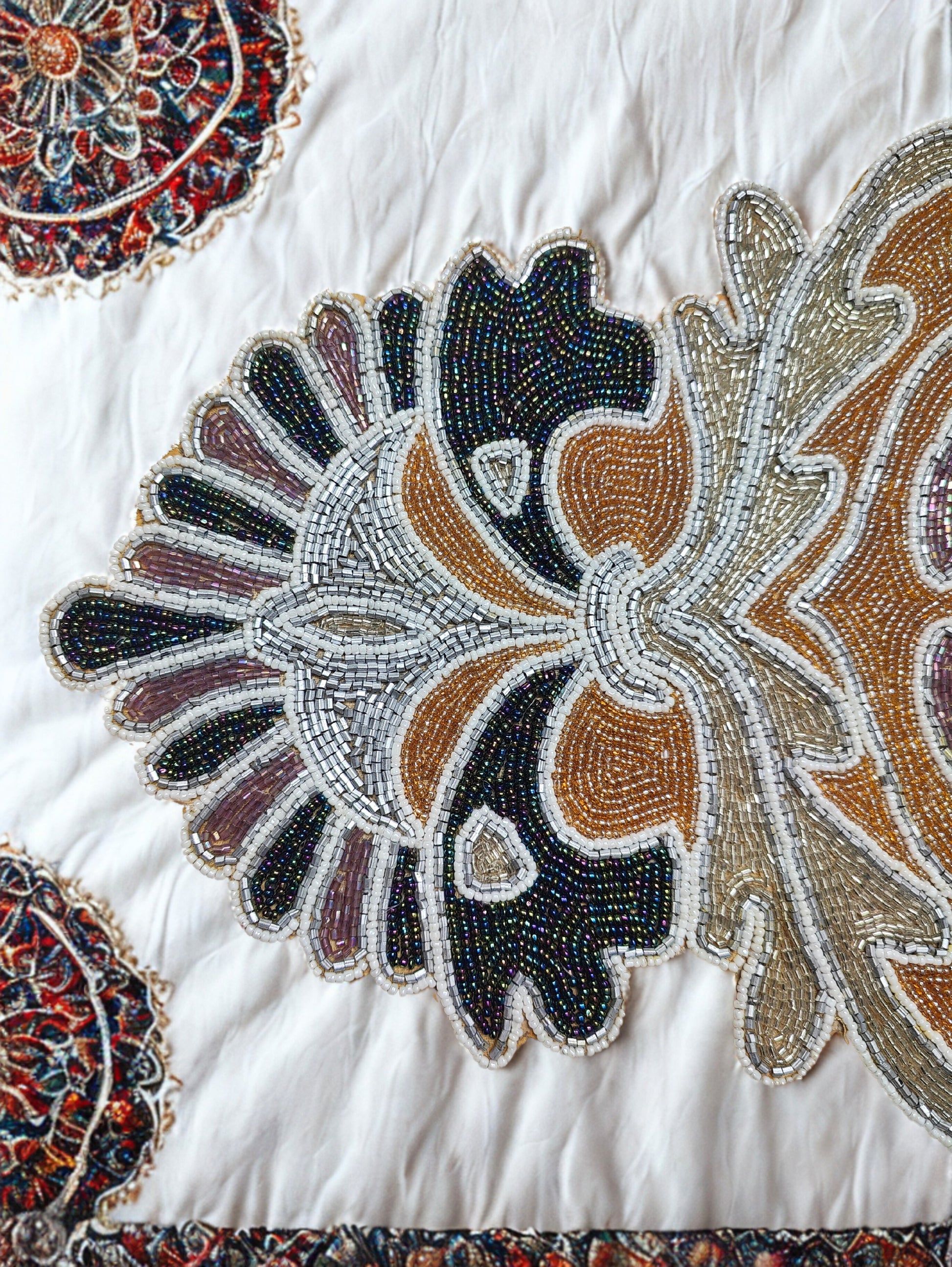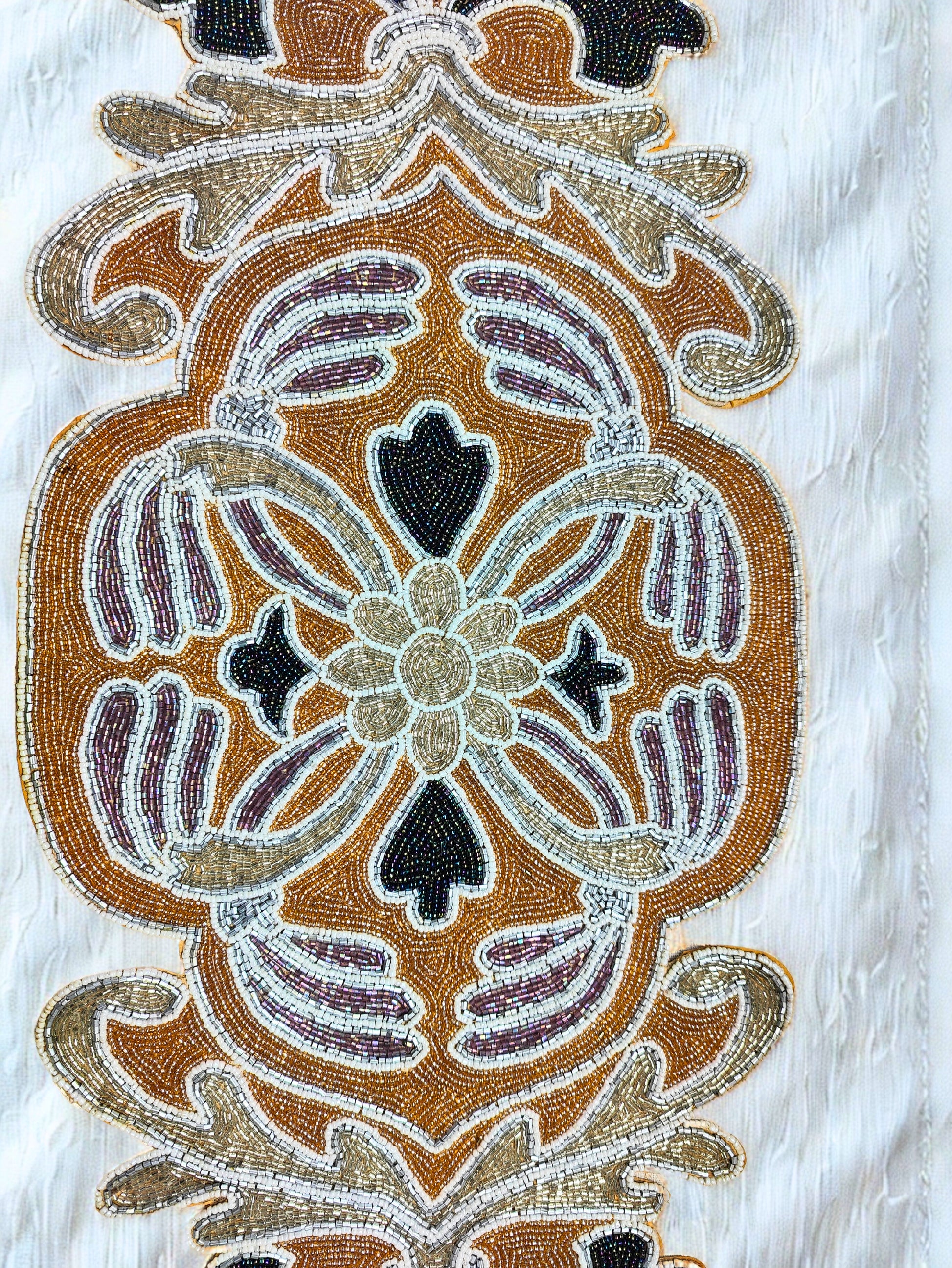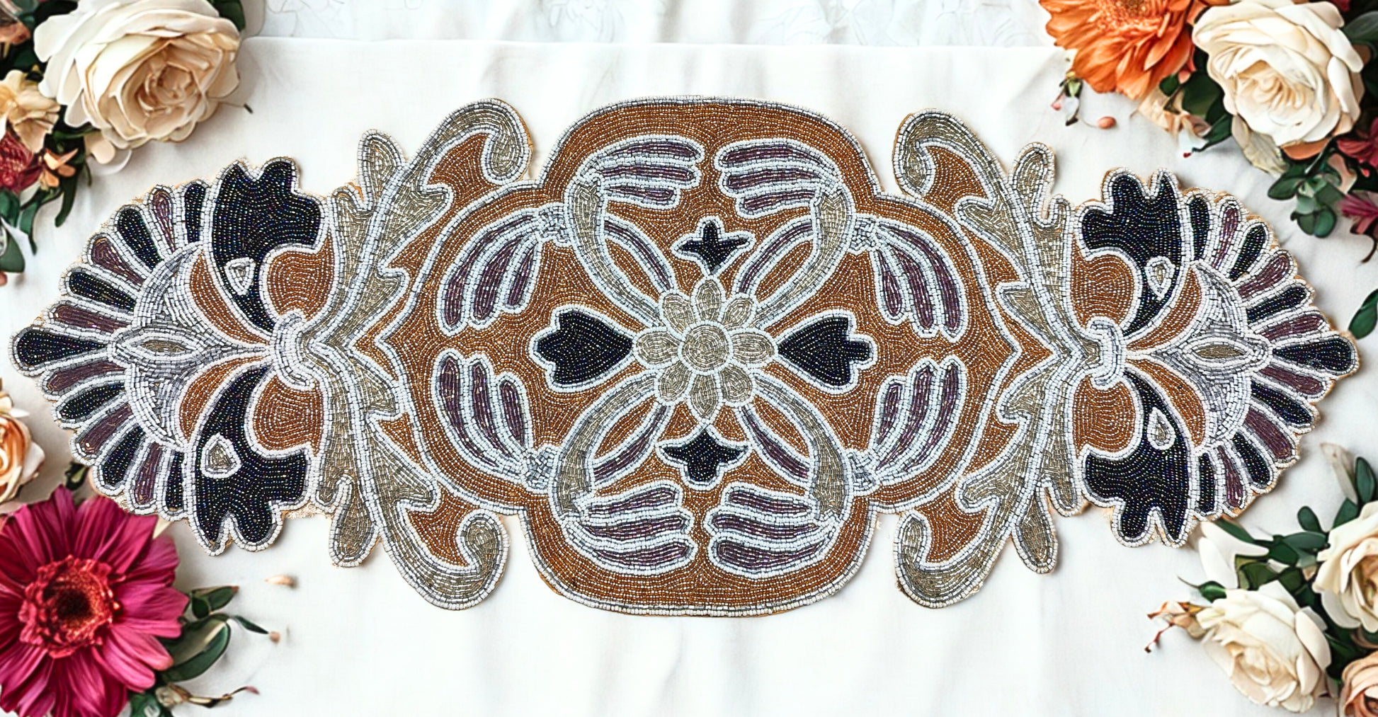 * 1 Hand-Beaded Table Runner — an artisanal accent that brings subtle elegance to your table.